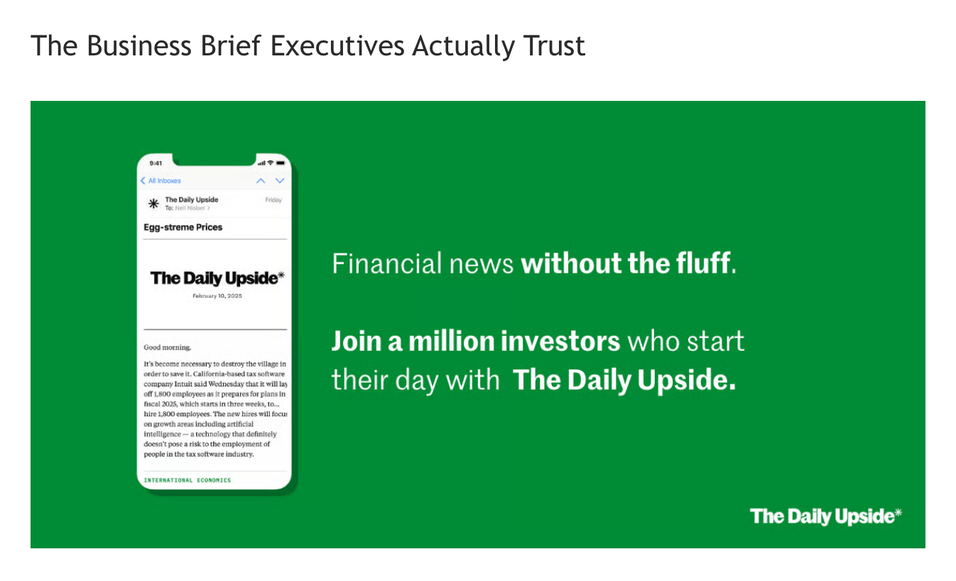 Investing isn’t about chasing headlines — it’s about clarity. In a world of hype and hot takes, The Daily Upside delivers real value: sharp, trustworthy insights on markets, business, and the economy, written by former bankers and seasoned financial journalists.
